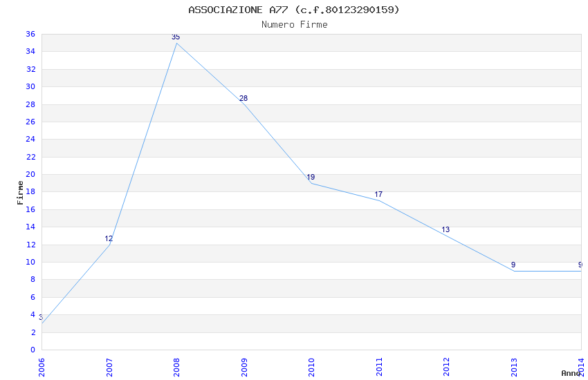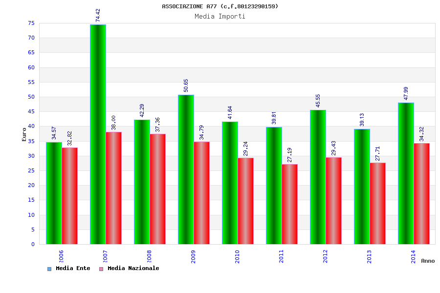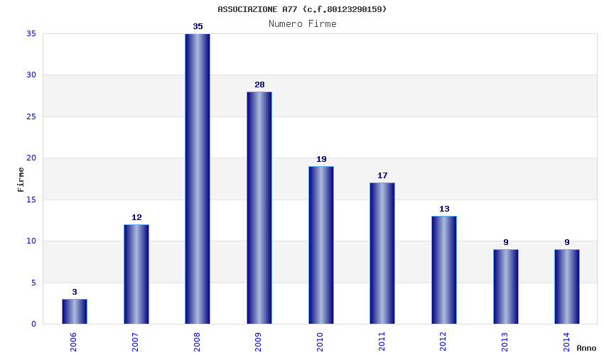 | Anno | Firme | Importi | Media | Naz. | Reg. | Prov. | Comu. |