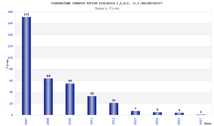 | Anno | Firme | Importi | Media | Naz. | Reg. | Prov. | Comu. |