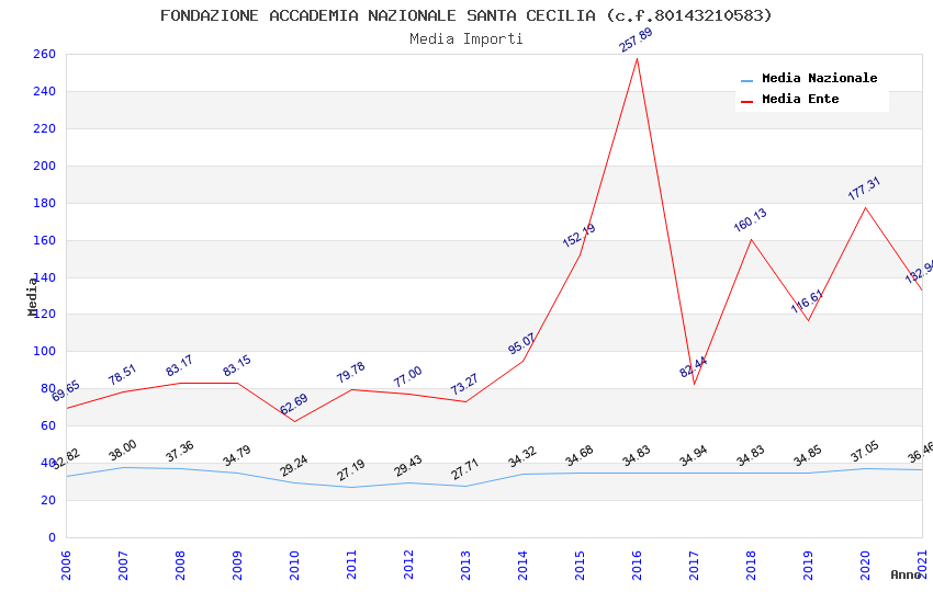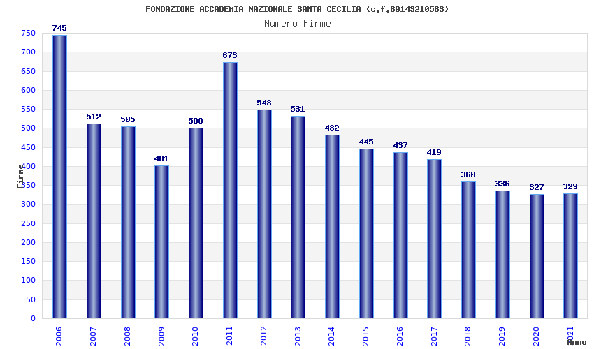 | Anno | Firme | Importi | Media | Naz. | Reg. | Prov. | Comu. |