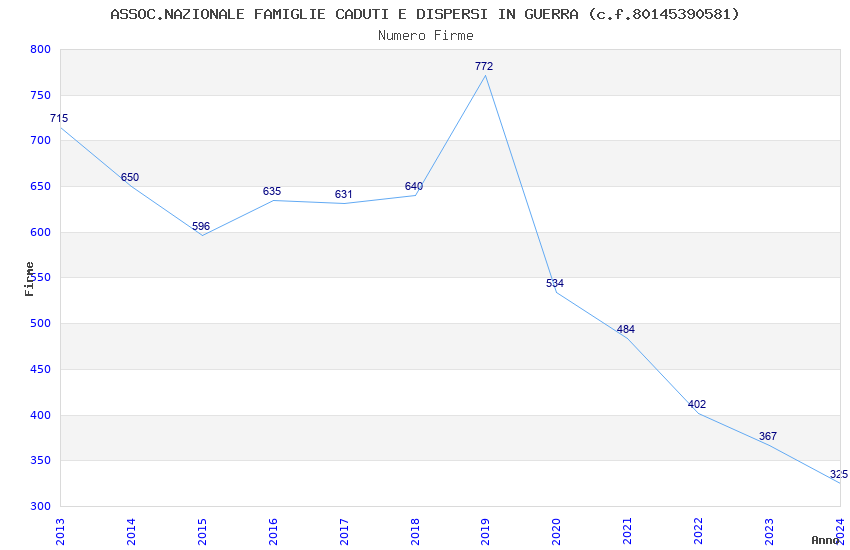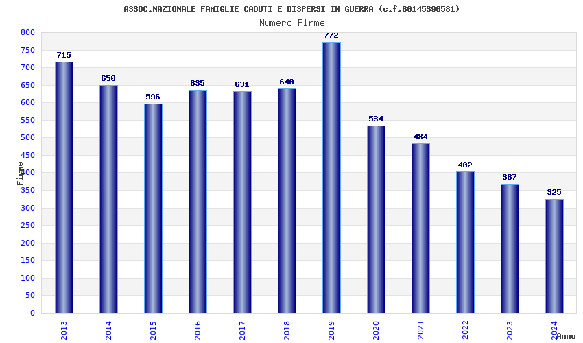 | Anno | Firme | Importi | Media | Naz. | Reg. | Prov. | Comu. |