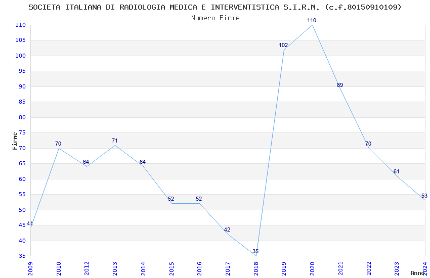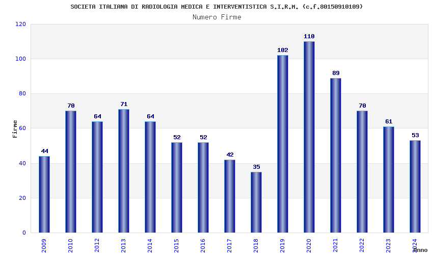 | Anno | Firme | Importi | Media | Naz. | Reg. | Prov. | Comu. |