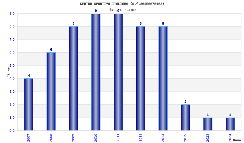 | Anno | Firme | Importi | Media | Naz. | Reg. | Prov. | Comu. |