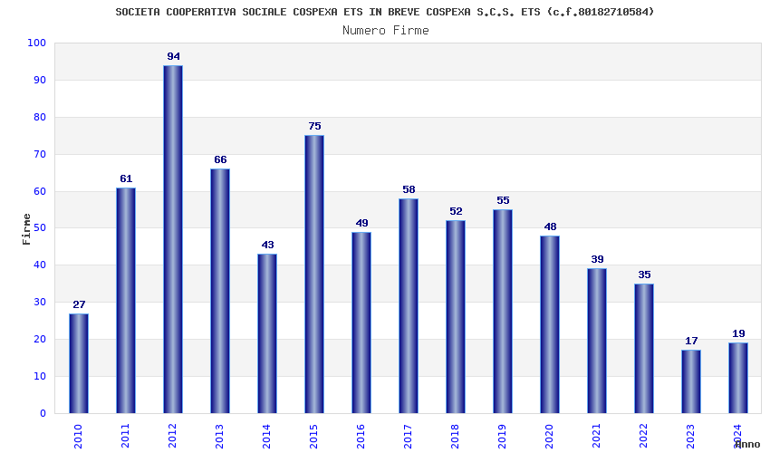 | Anno | Firme | Importi | Media | Naz. | Reg. | Prov. | Comu. |