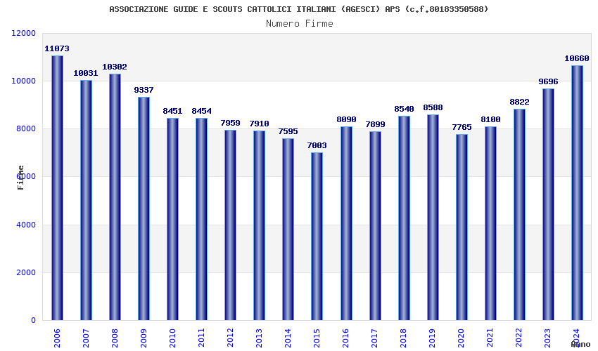 | Anno | Firme | Importi | Media | Naz. | Reg. | Prov. | Comu. |