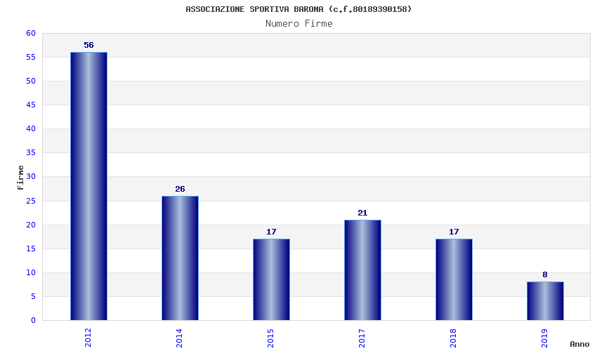 | Anno | Firme | Importi | Media | Naz. | Reg. | Prov. | Comu. |