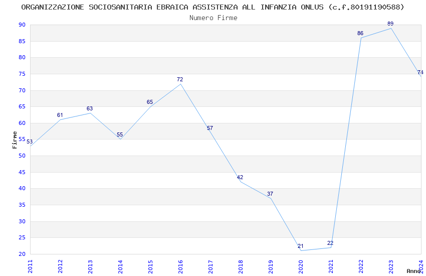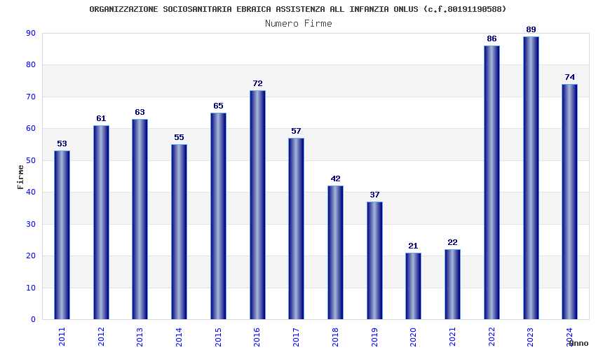 | Anno | Firme | Importi | Media | Naz. | Reg. | Prov. | Comu. |