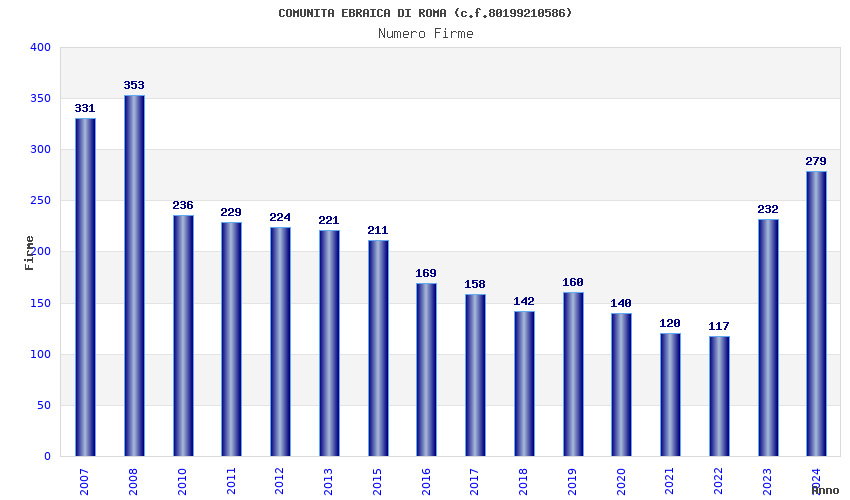 | Anno | Firme | Importi | Media | Naz. | Reg. | Prov. | Comu. |