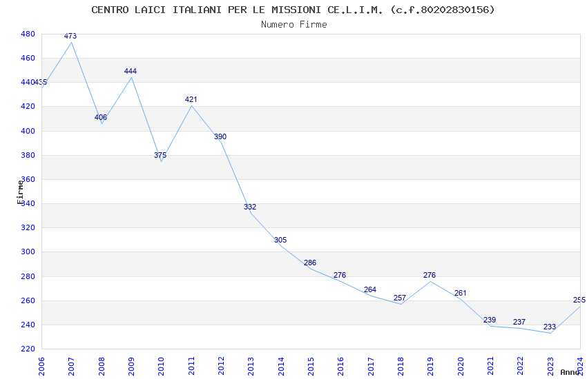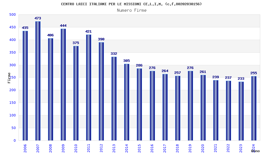 | Anno | Firme | Importi | Media | Naz. | Reg. | Prov. | Comu. |