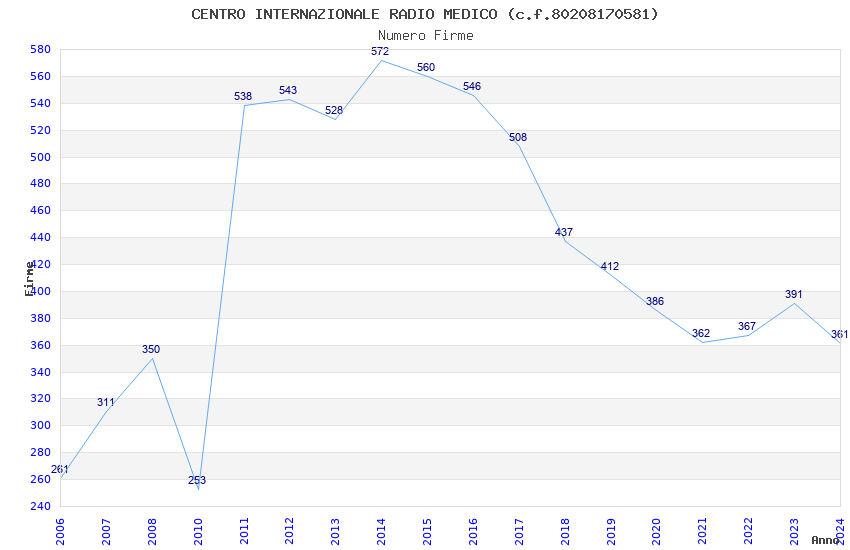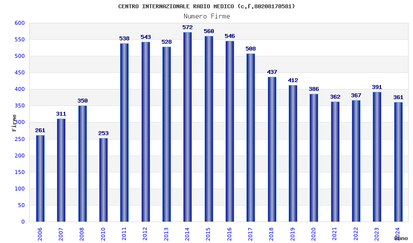 | Anno | Firme | Importi | Media | Naz. | Reg. | Prov. | Comu. |