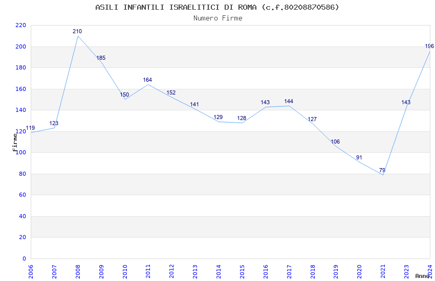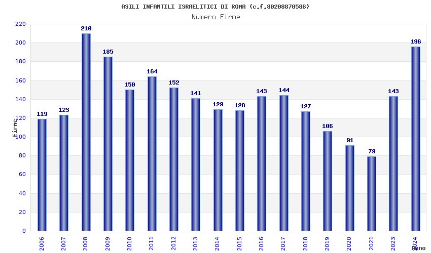 | Anno | Firme | Importi | Media | Naz. | Reg. | Prov. | Comu. |
