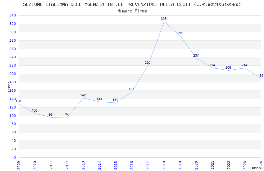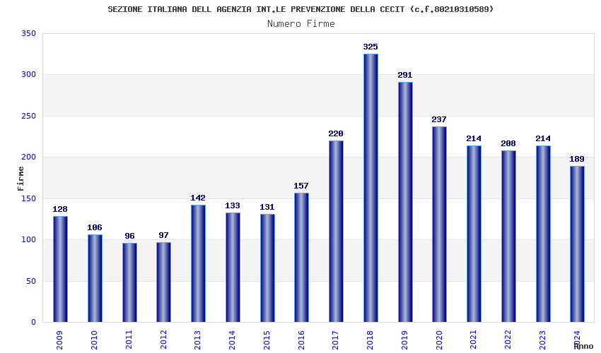 | Anno | Firme | Importi | Media | Naz. | Reg. | Prov. | Comu. |