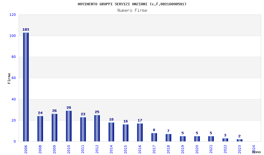 | Anno | Firme | Importi | Media | Naz. | Reg. | Prov. | Comu. |