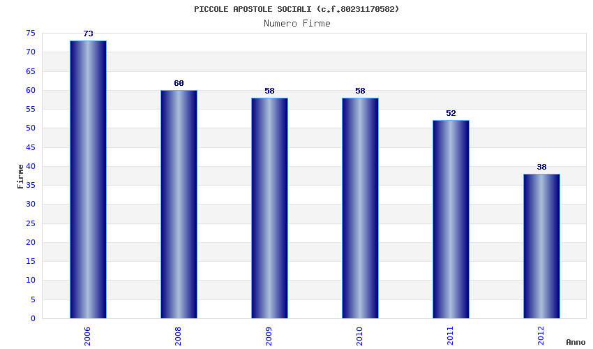 | Anno | Firme | Importi | Media | Naz. | Reg. | Prov. | Comu. |