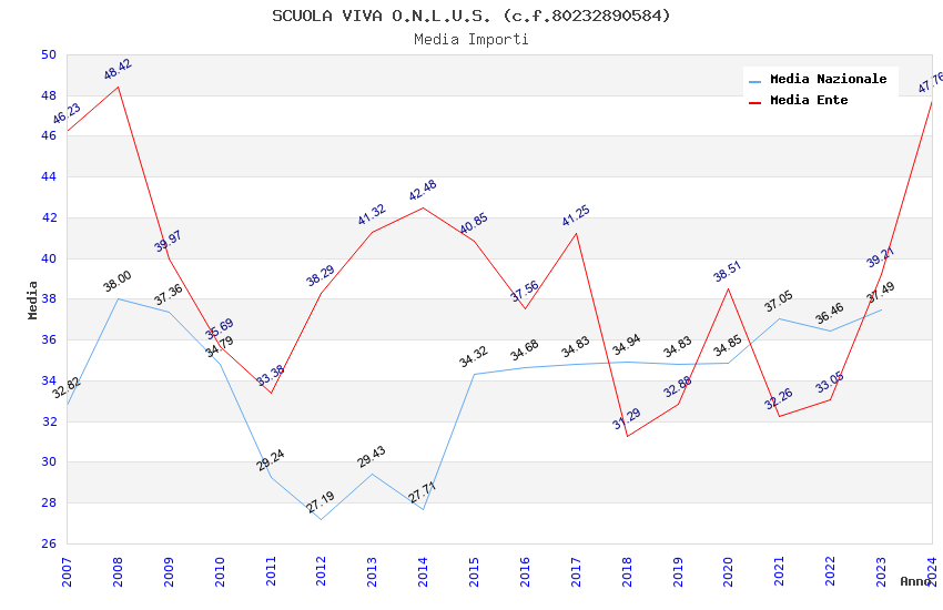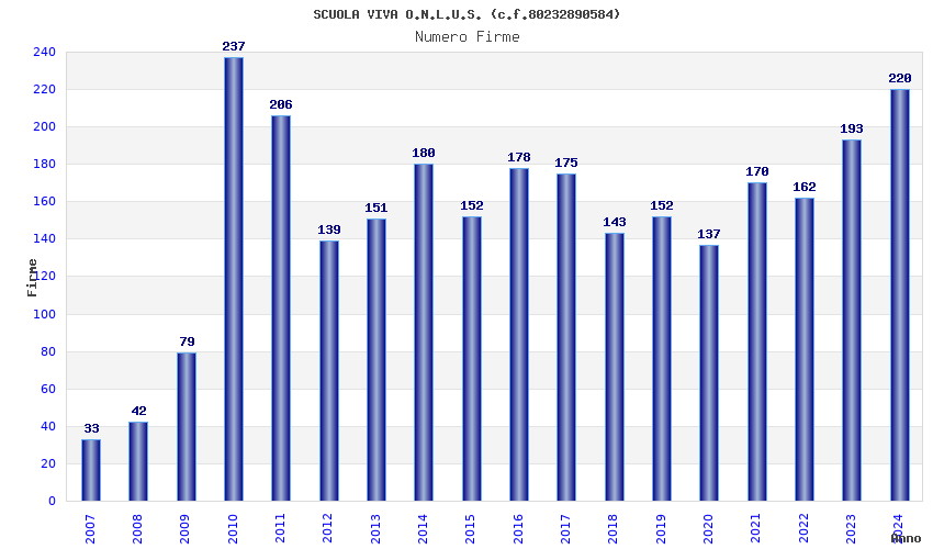 | Anno | Firme | Importi | Media | Naz. | Reg. | Prov. | Comu. |