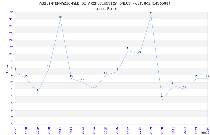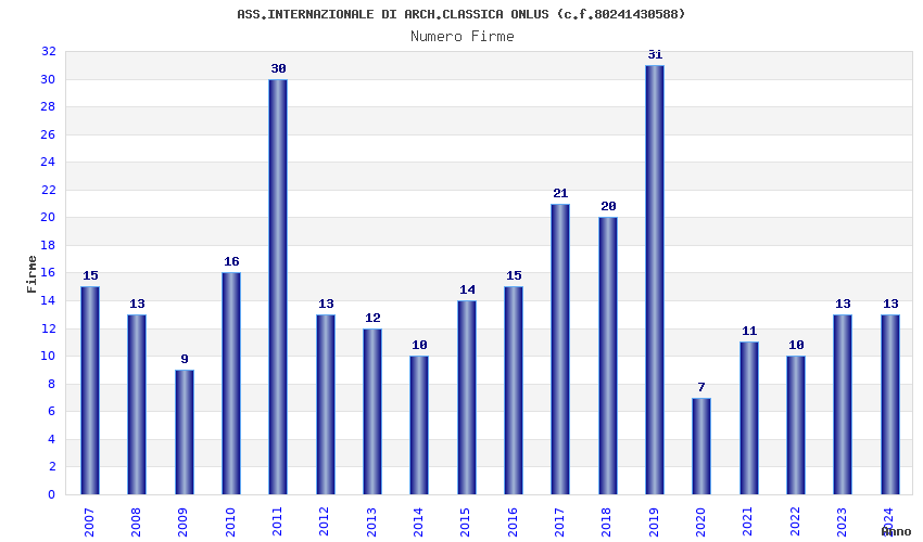 | Anno | Firme | Importi | Media | Naz. | Reg. | Prov. | Comu. |