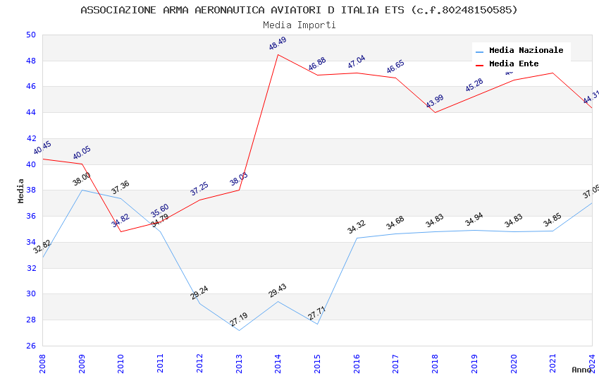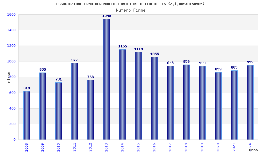 | Anno | Firme | Importi | Media | Naz. | Reg. | Prov. | Comu. |