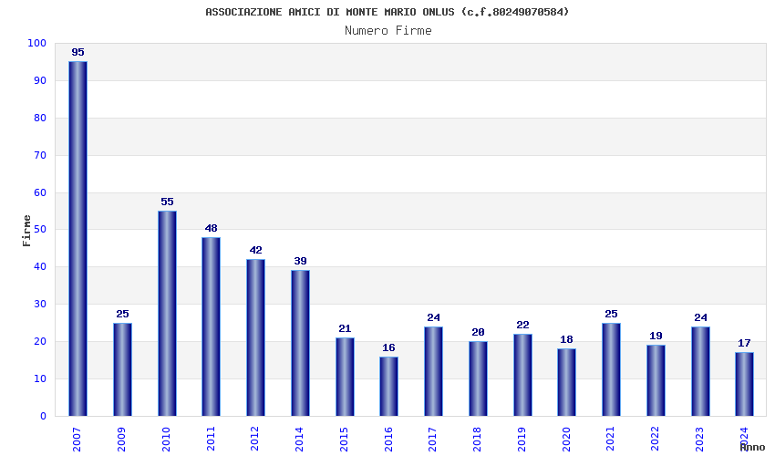 | Anno | Firme | Importi | Media | Naz. | Reg. | Prov. | Comu. |