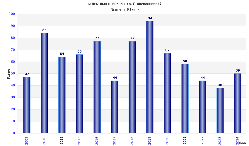 | Anno | Firme | Importi | Media | Naz. | Reg. | Prov. | Comu. |