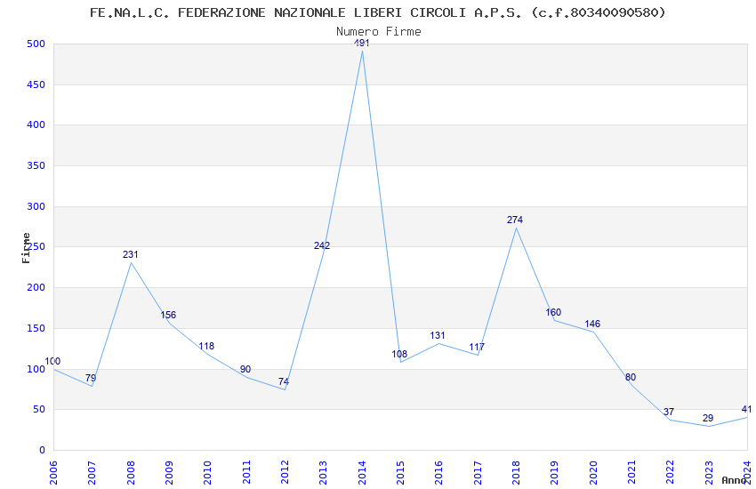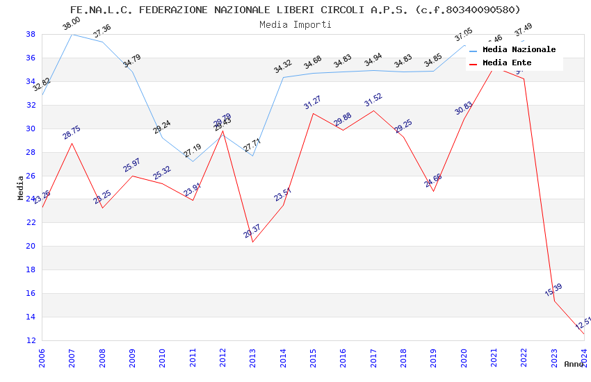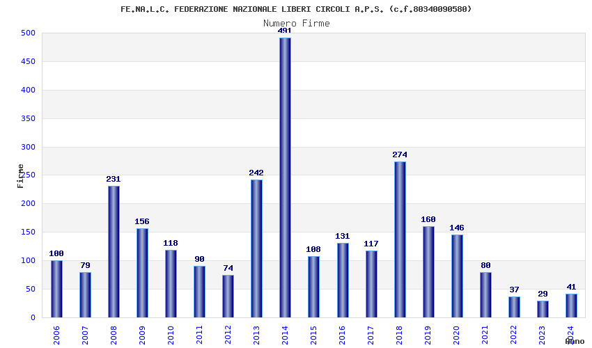 | Anno | Firme | Importi | Media | Naz. | Reg. | Prov. | Comu. |