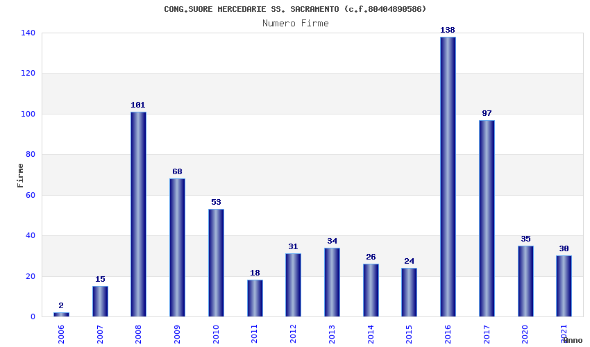 | Anno | Firme | Importi | Media | Naz. | Reg. | Prov. | Comu. |