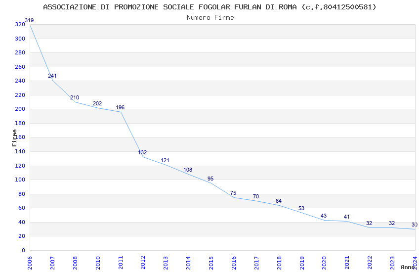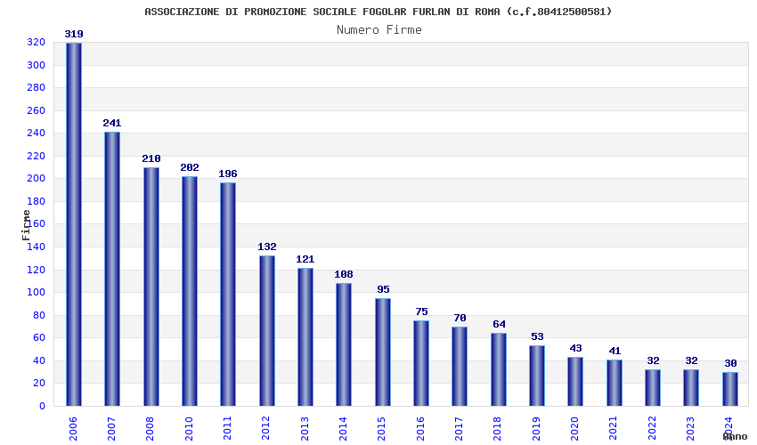| Anno | Firme | Importi | Media | Naz. | Reg. | Prov. | Comu. |