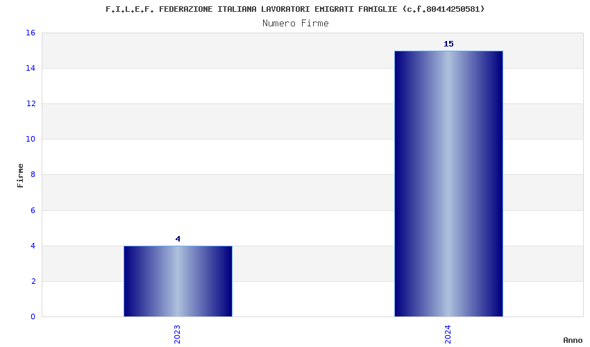 | Anno | Firme | Importi | Media | Naz. | Reg. | Prov. | Comu. |