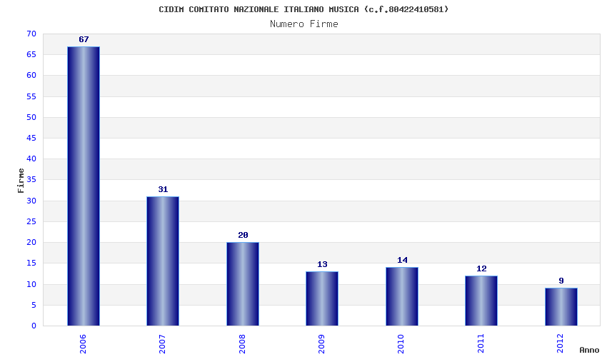 | Anno | Firme | Importi | Media | Naz. | Reg. | Prov. | Comu. |