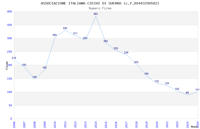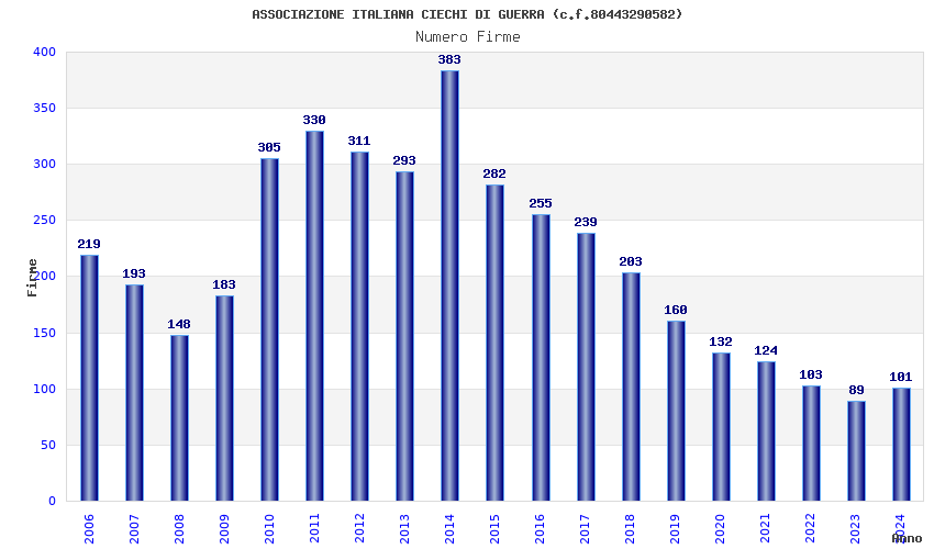 | Anno | Firme | Importi | Media | Naz. | Reg. | Prov. | Comu. |