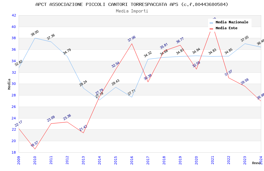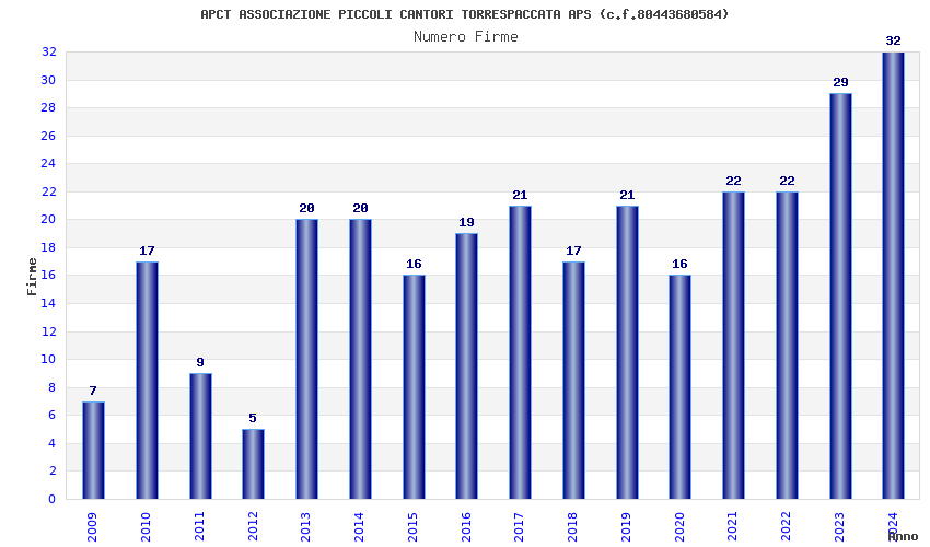 | Anno | Firme | Importi | Media | Naz. | Reg. | Prov. | Comu. |