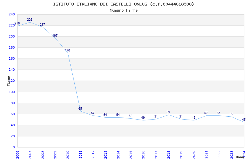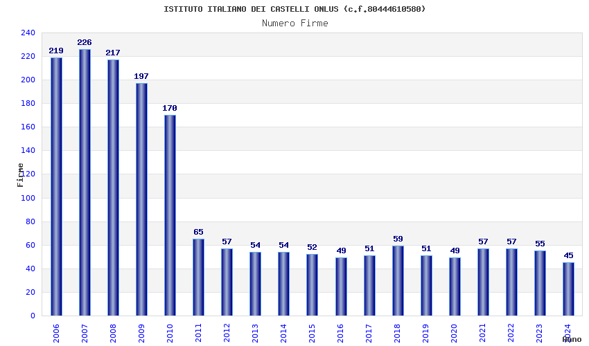 | Anno | Firme | Importi | Media | Naz. | Reg. | Prov. | Comu. |