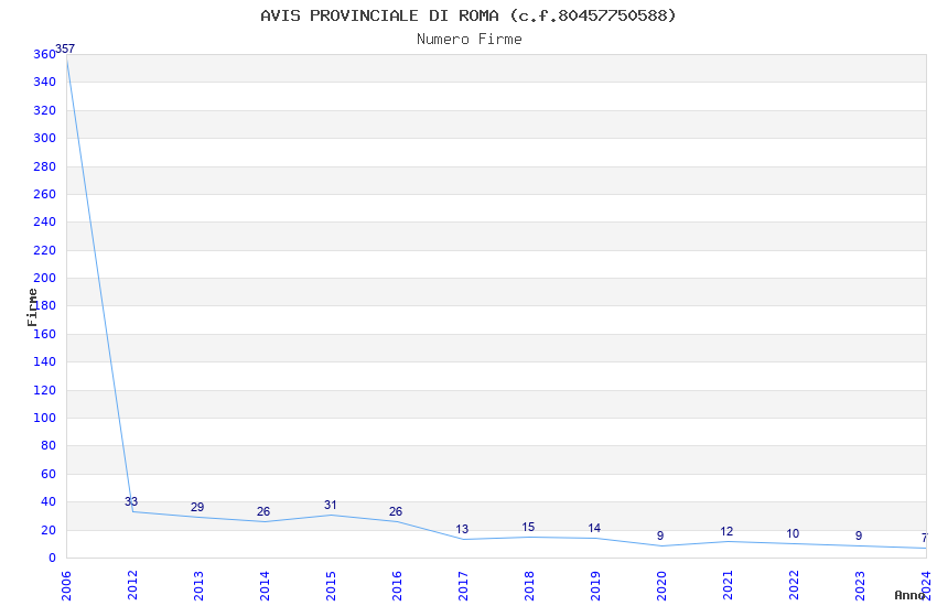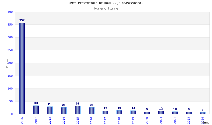 | Anno | Firme | Importi | Media | Naz. | Reg. | Prov. | Comu. |