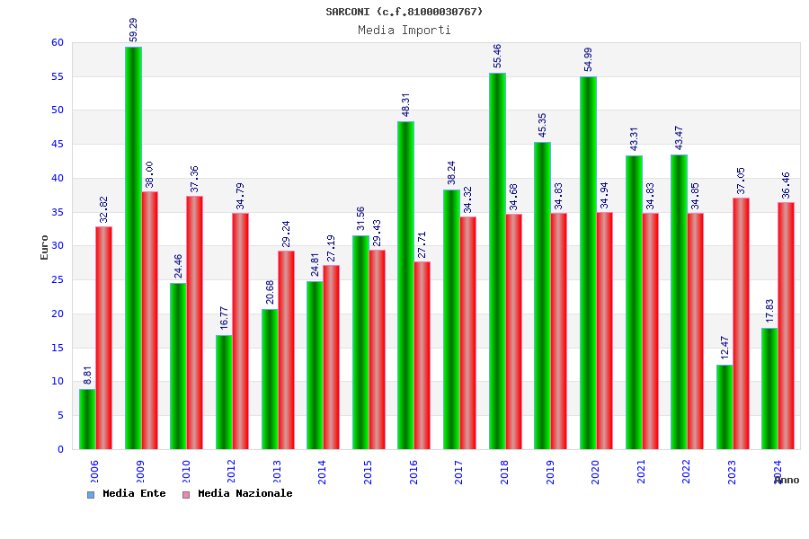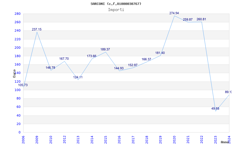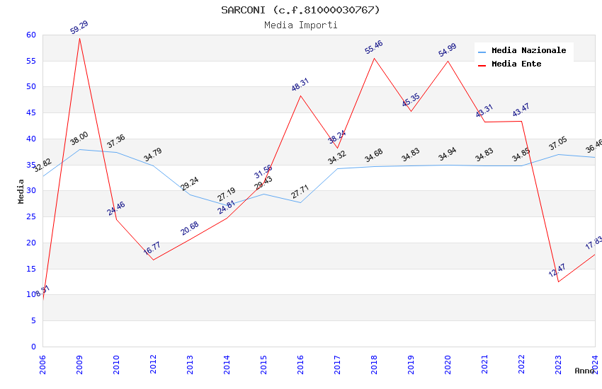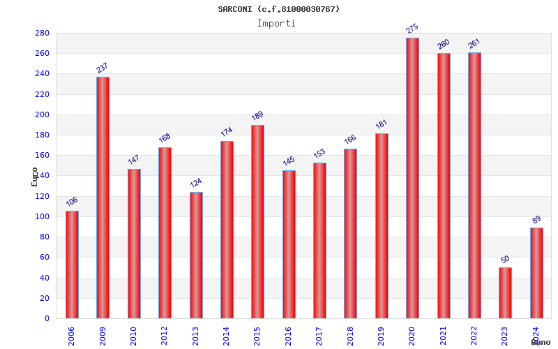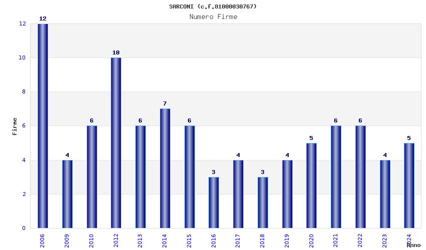 | Anno | Firme | Importi | Media | Naz. | Reg. | Prov. | Comu. |