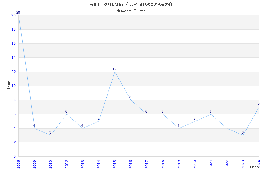 | 2006 | 20 | 366,97 | 18,35 | 24.710 | 1.816 | 150 | 1 |