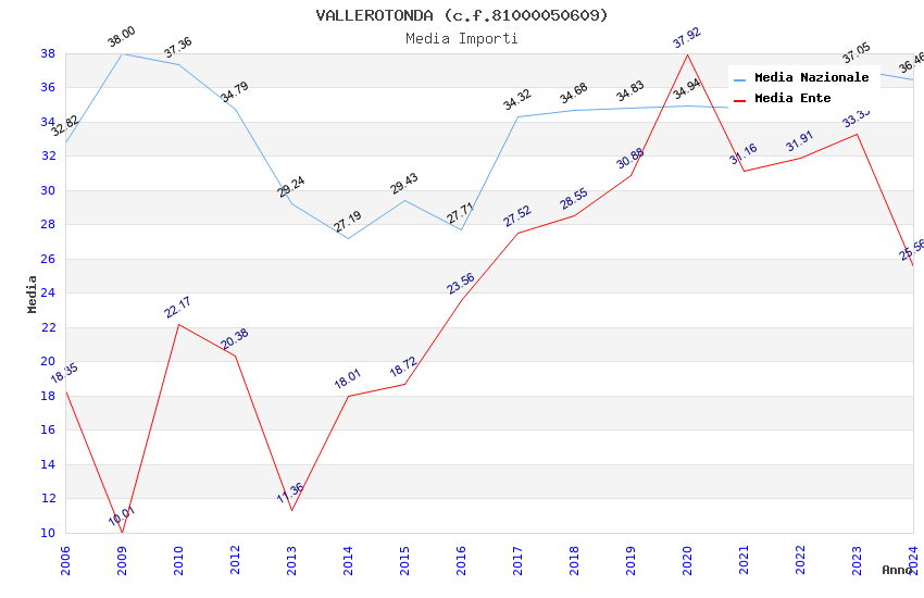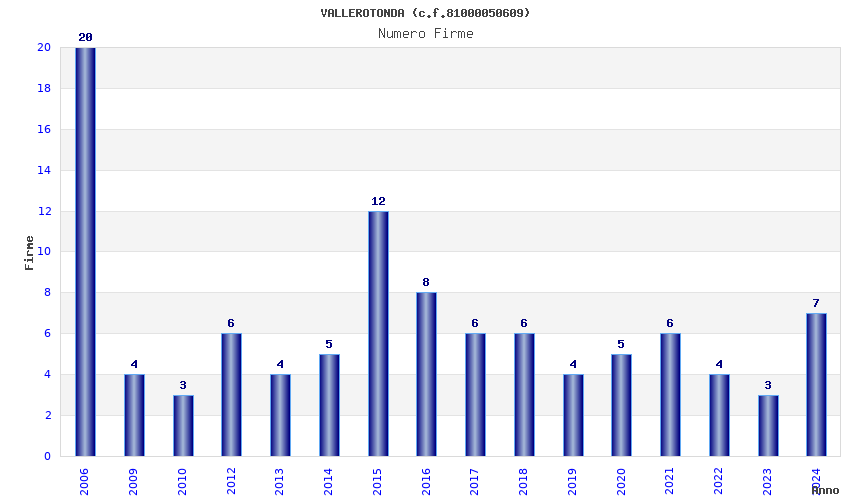 | Anno | Firme | Importi | Media | Naz. | Reg. | Prov. | Comu. |