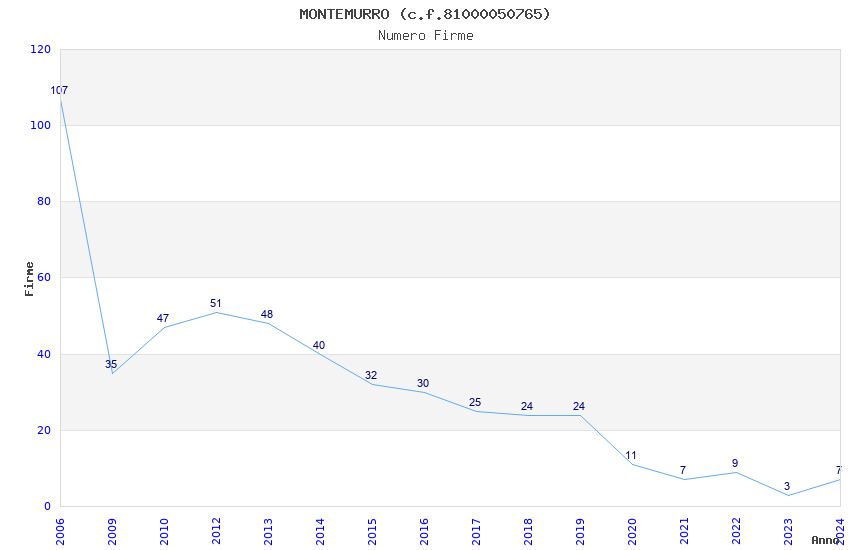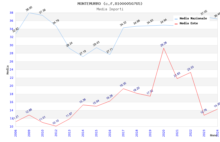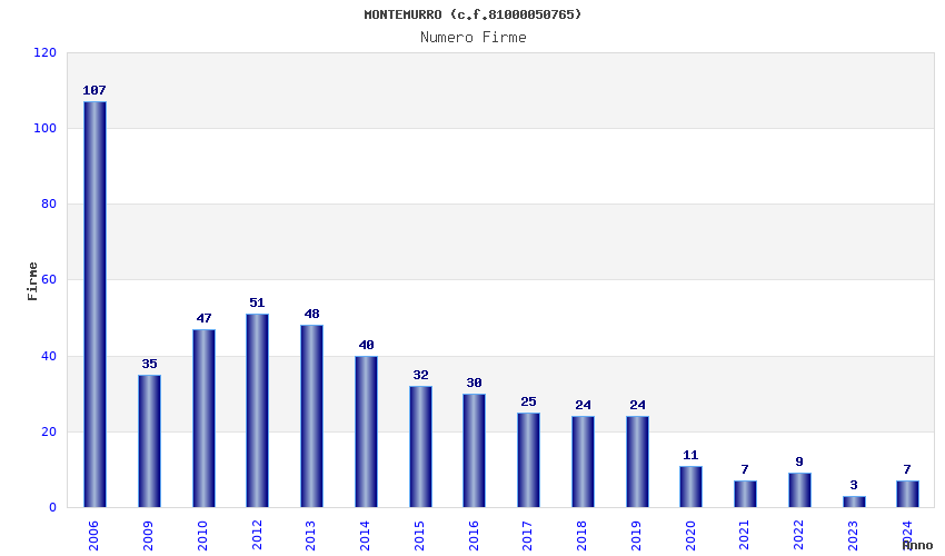 | Anno | Firme | Importi | Media | Naz. | Reg. | Prov. | Comu. |