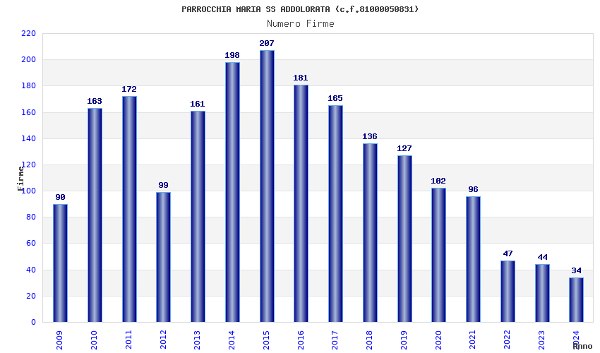 | Anno | Firme | Importi | Media | Naz. | Reg. | Prov. | Comu. |