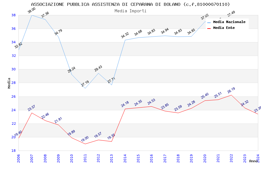 | Anno | Firme | Importi | Media | Naz. | Reg. | Prov. | Comu. |