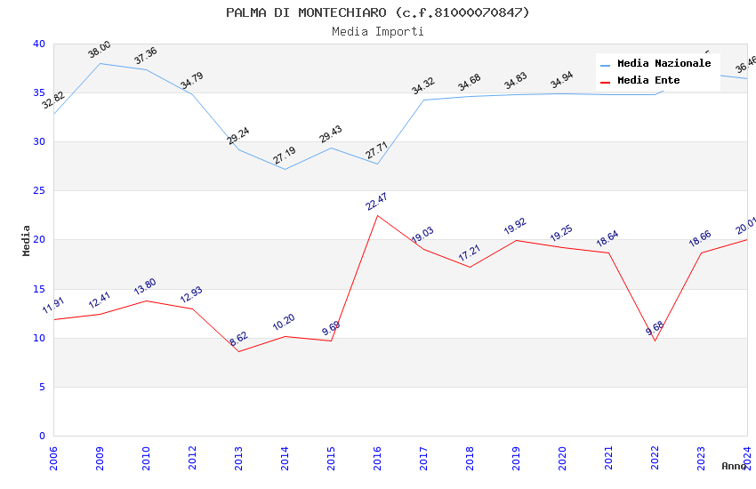 | Anno | Firme | Importi | Media | Naz. | Reg. | Prov. | Comu. |