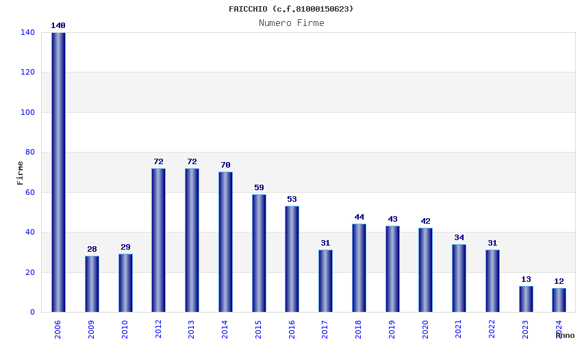| Anno | Firme | Importi | Media | Naz. | Reg. | Prov. | Comu. |