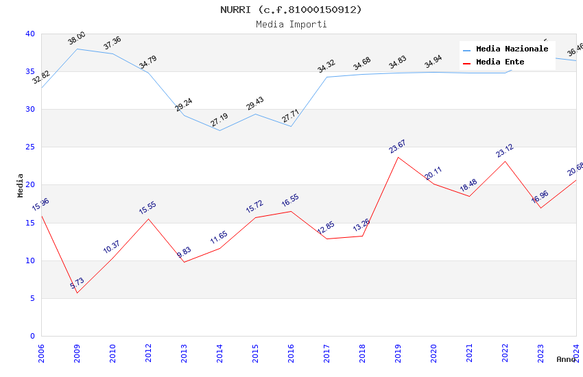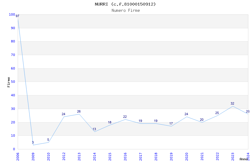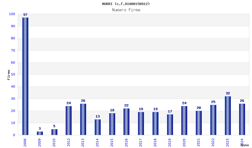 | Anno | Firme | Importi | Media | Naz. | Reg. | Prov. | Comu. |