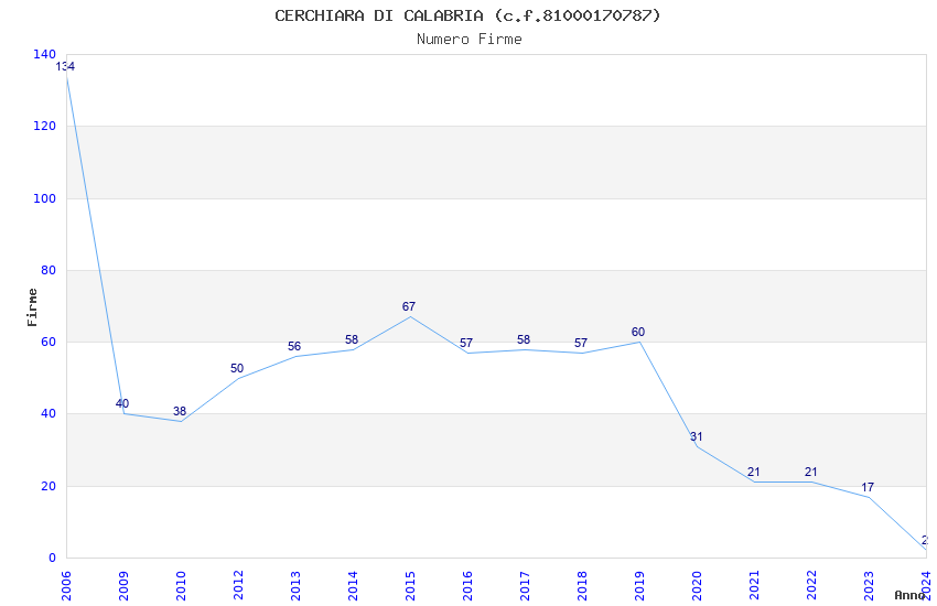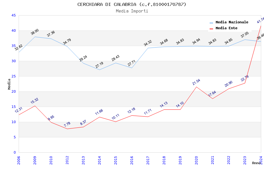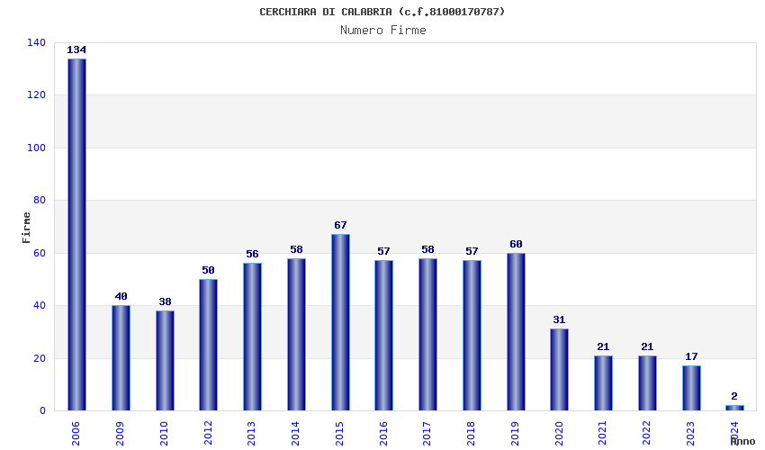 | Anno | Firme | Importi | Media | Naz. | Reg. | Prov. | Comu. |