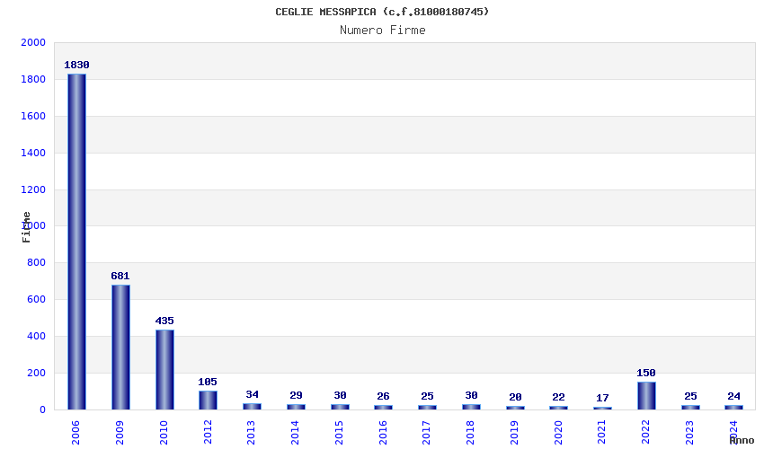| 2006 | 1.830 | 18.792,75 | 10,27 | 1.970 | 81 | 9 | 1 |