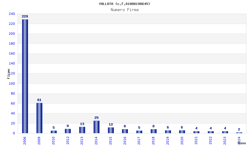 Anno Firme Importi Media Naz. Reg. Prov. Comu.
