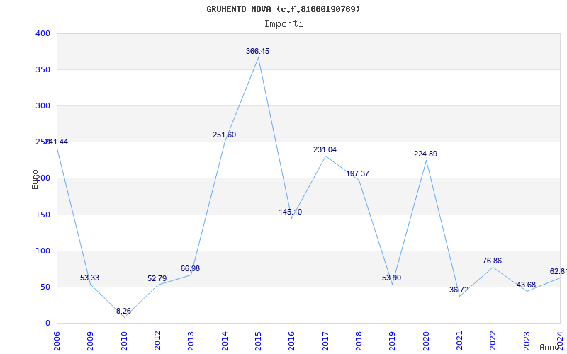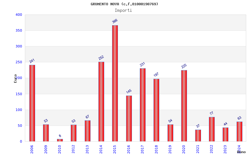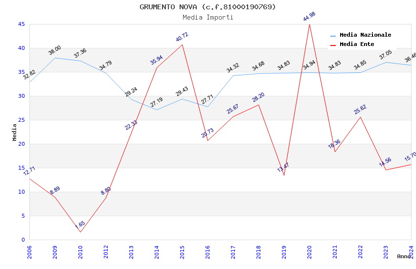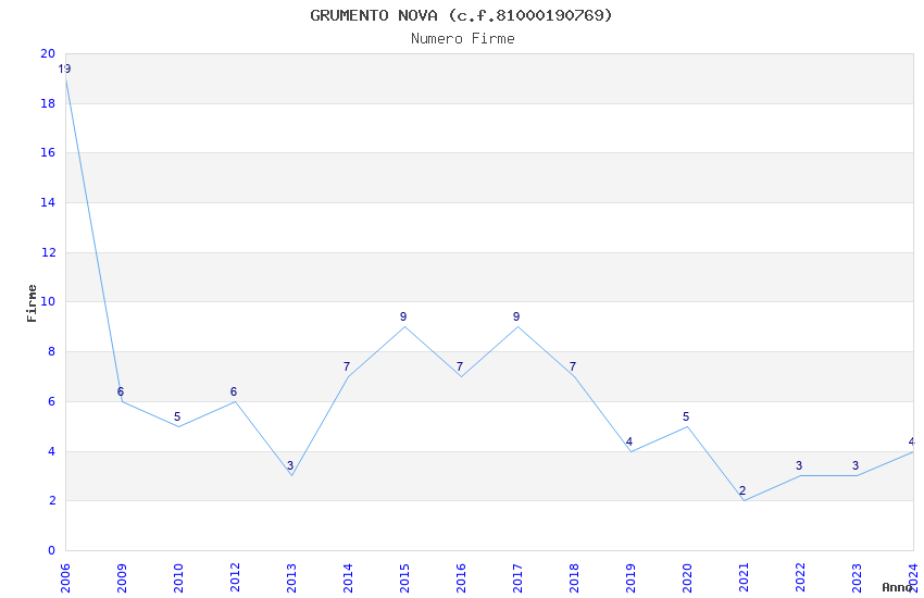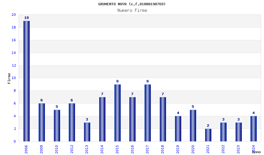 | Anno | Firme | Importi | Media | Naz. | Reg. | Prov. | Comu. |
