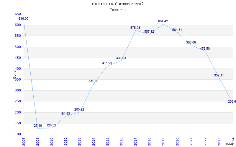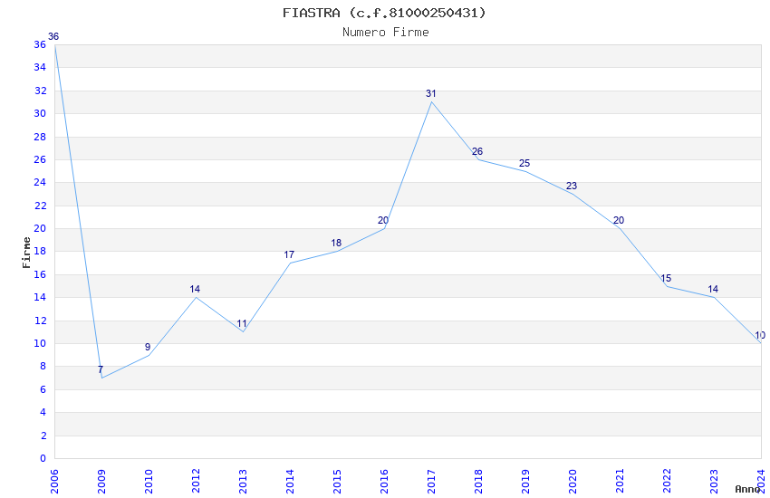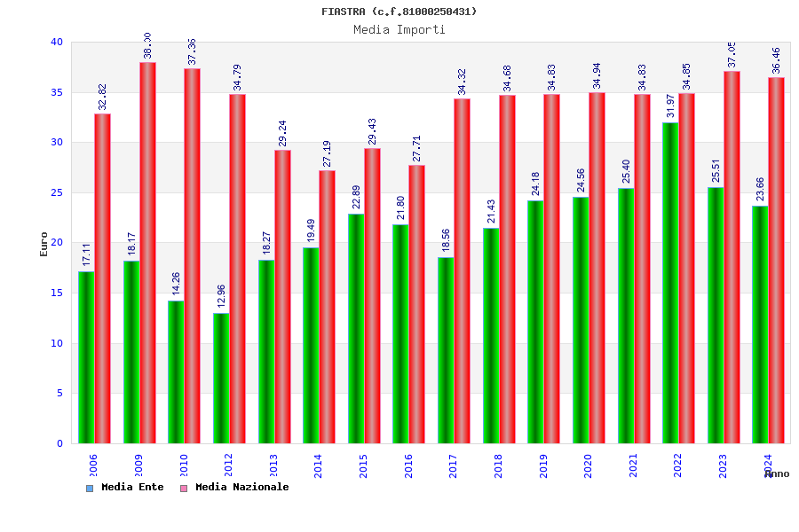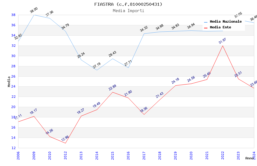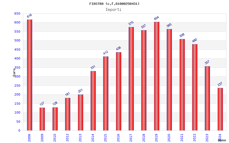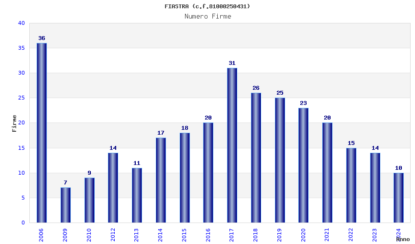 | Anno | Firme | Importi | Media | Naz. | Reg. | Prov. | Comu. |