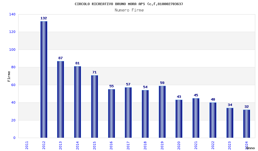 | Anno | Firme | Importi | Media | Naz. | Reg. | Prov. | Comu. |