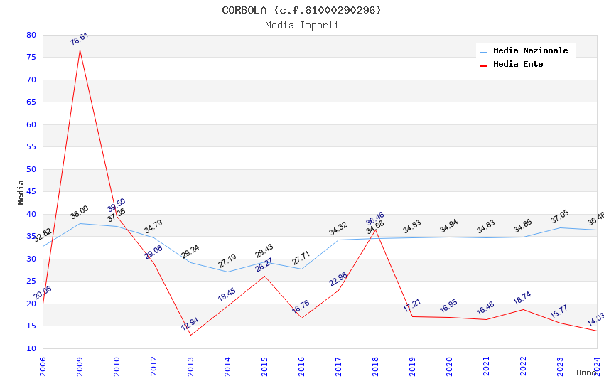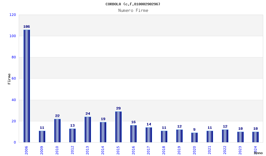 | Anno | Firme | Importi | Media | Naz. | Reg. | Prov. | Comu. |
