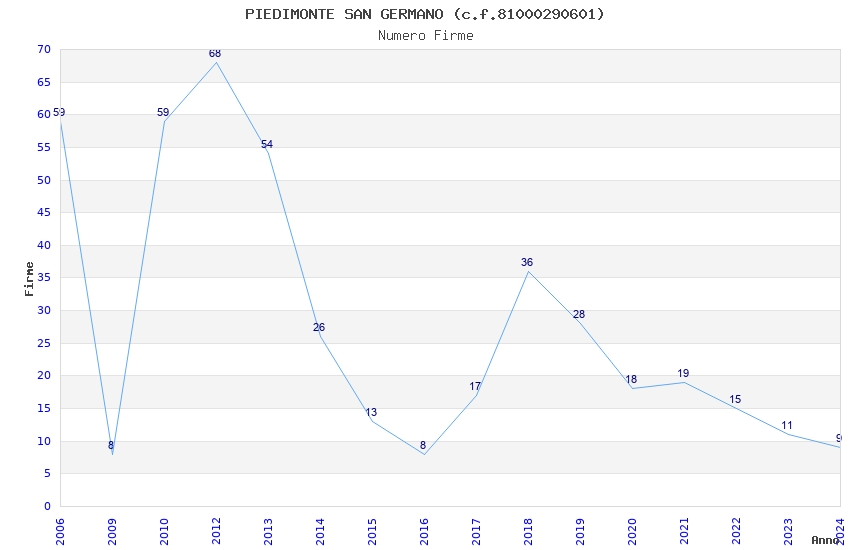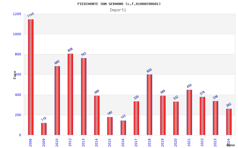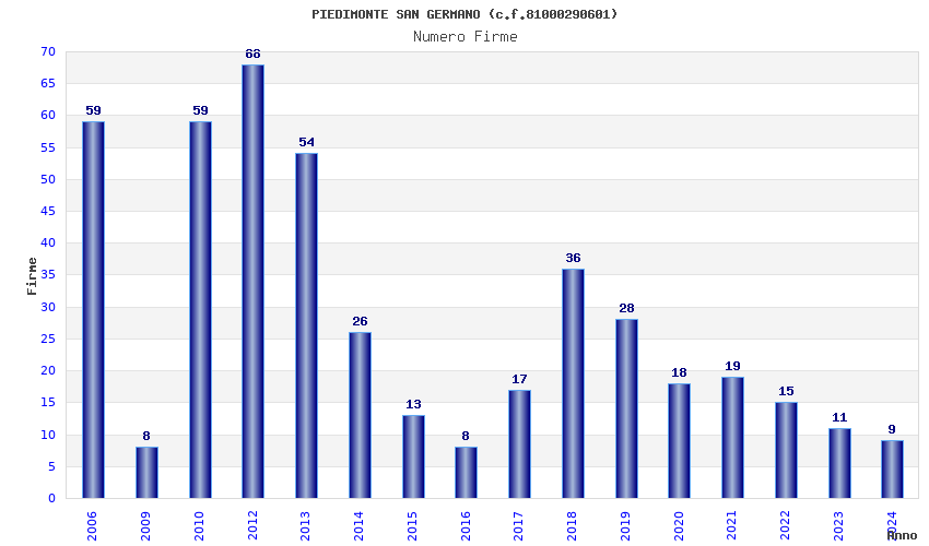 | Anno | Firme | Importi | Media | Naz. | Reg. | Prov. | Comu. |
