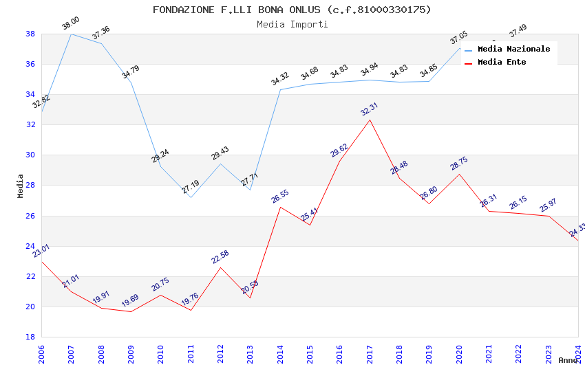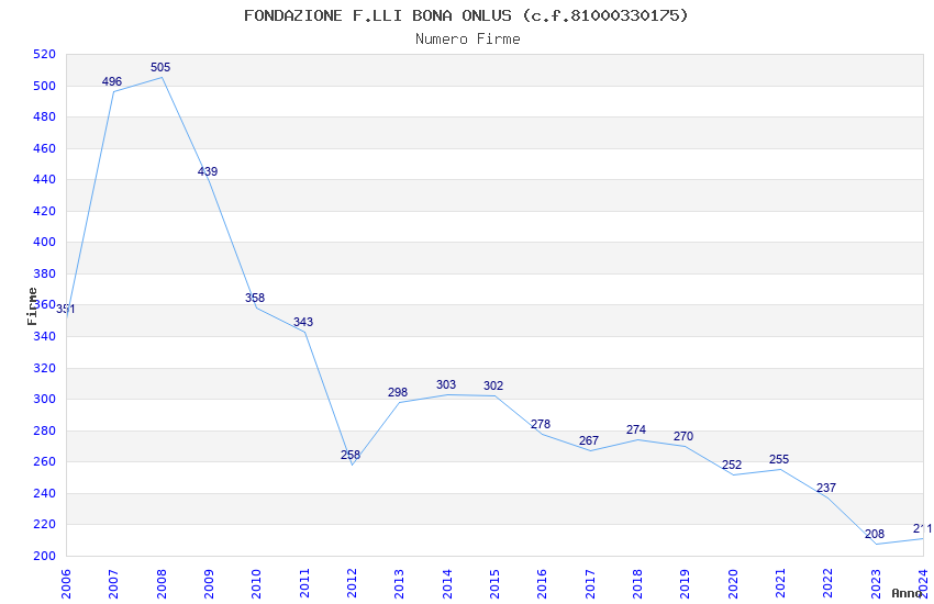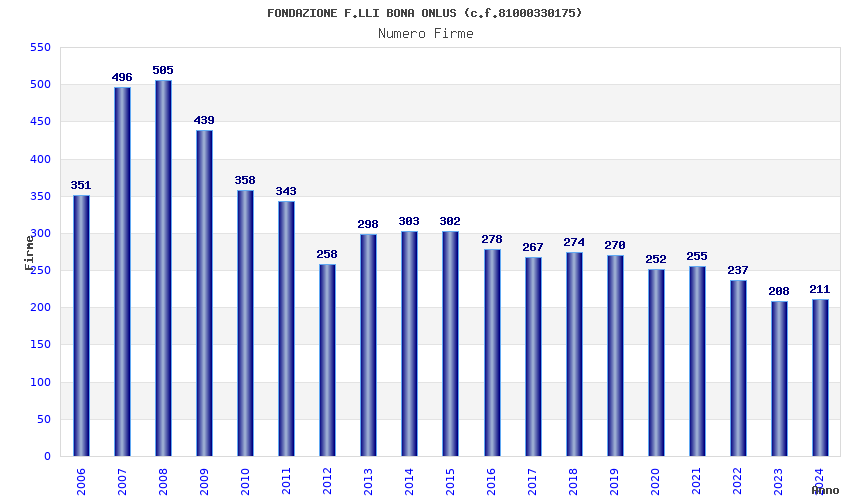 | Anno | Firme | Importi | Media | Naz. | Reg. | Prov. | Comu. |