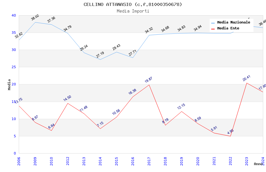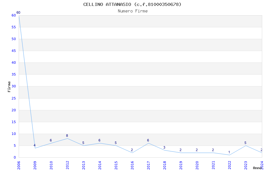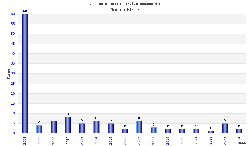 | Anno | Firme | Importi | Media | Naz. | Reg. | Prov. | Comu. |